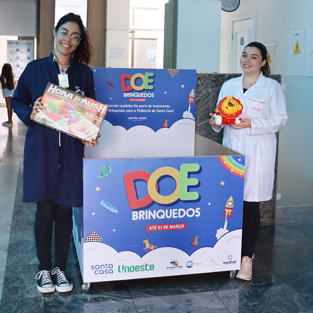 A Santa Casa e a unoeste encerraram a campanha de arrecadação de brinquedos para a Pediatria do hospital. Após 20 dias de ação, o serviço de psicologia da instituição avaliou a iniciativa como um sucesso, visto que foram arrecadadas mais de 100 peças/brinquedos, possibilitando a renovação dos itens na brinquedoteca da unidade.