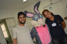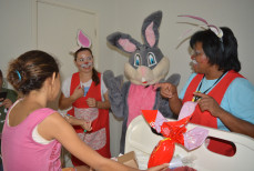 No setor de pediatria do hospital, o café da tarde foi diferente com um cardápio do jeito que os pequenos gostam com direito a bolo, suco e salgados. O coelho e as contadoras de histórias do Centro Cultural Matarazzo percorreram os quartos com muita alegria e fizeram a distribuição de ovos de chocolate e bombons. “Minha filha ficou super feliz, ele adorou o coelho. Uma iniciativa ótima pra animar as crianças”, afirmou Edna Ribeiro que acompanha a filha de 4 anos internada a dez dias.