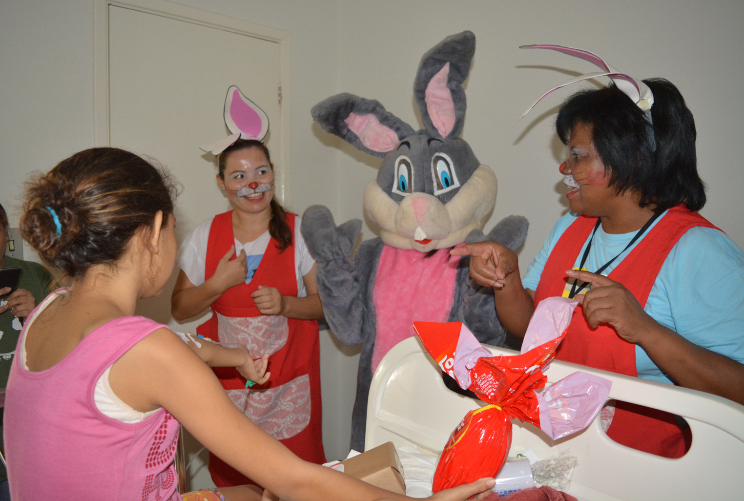 A Páscoa chegou mais cedo para as crianças em tratamento no setor de oncologia e internadas na pediatria da Santa Casa de Presidente Prudente. Elas ganharam ovos de chocolate e receberam a visita de um coelho da Páscoa.
