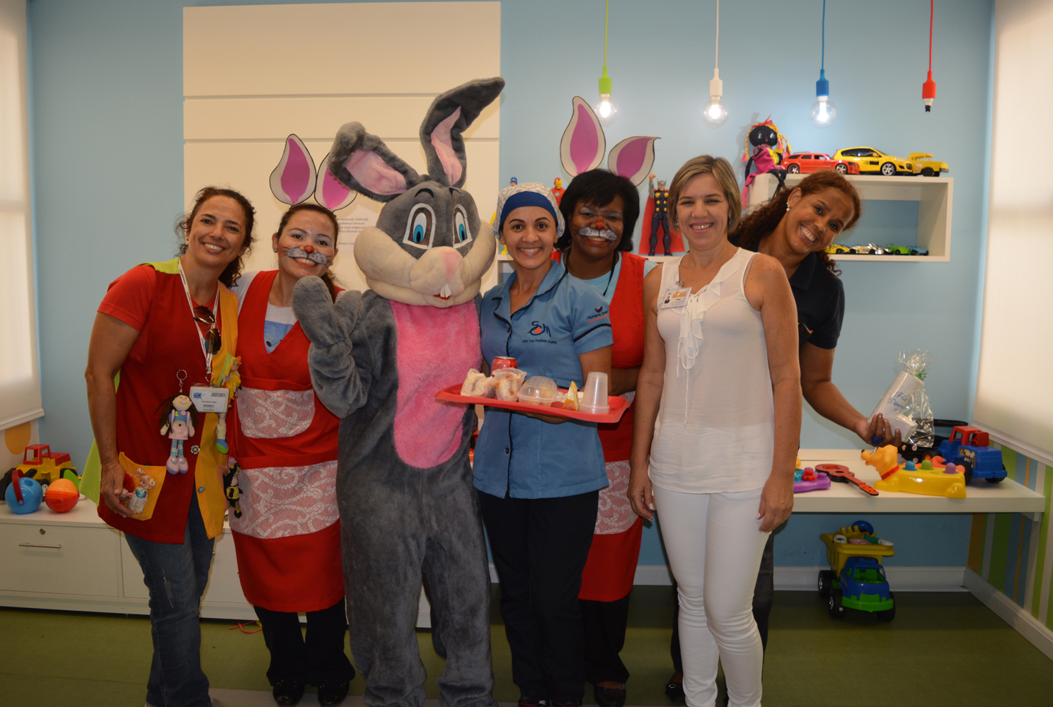 As ações de Páscoa foram realizadas com a parceria de voluntários e doações. Um grupo de pais da Educação Infantil e Ensino Fundamental do colégio Anglo doaram caixas de bombons, os ovos de chocolate foram uma doação dos alunos do Colégio São Paulo. O Lacmen - Laboratório Análises Clínicas Medicina Nuclear também colaborou com brindes. As festas foram organizadas pelos grupos de Humanização, Voluntariado da Santa Casa e Associação de Apoio ao Portador de Câncer de Presidente Prudente.