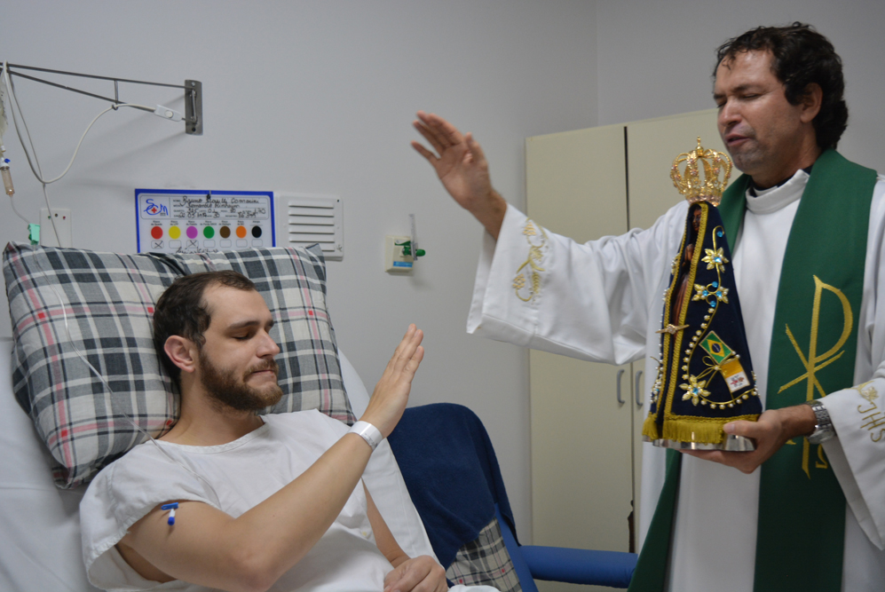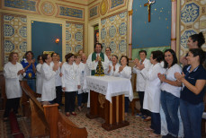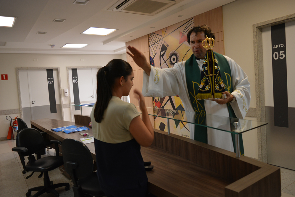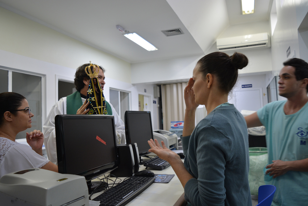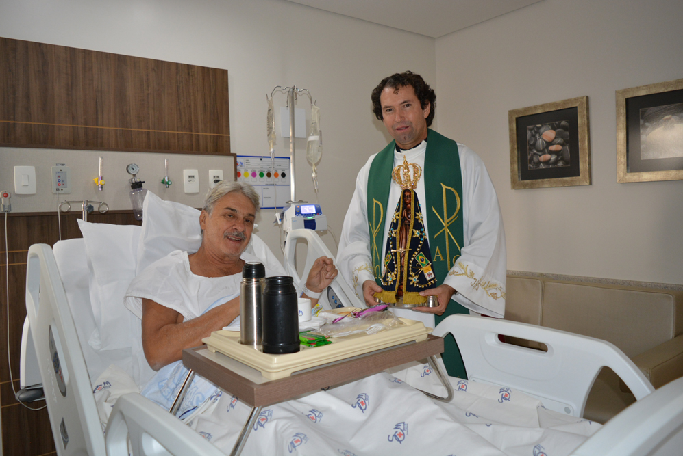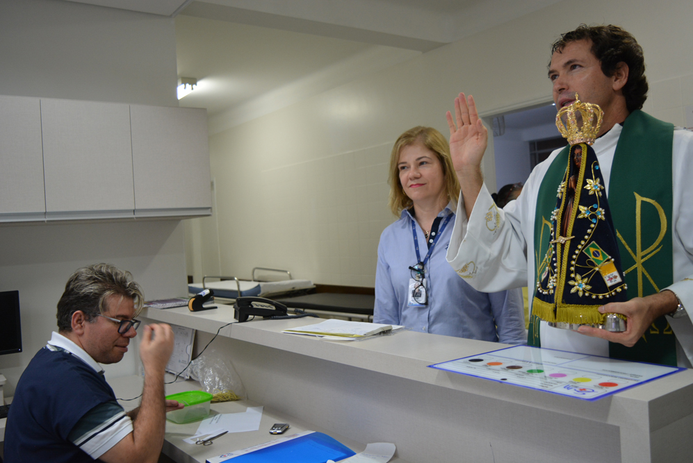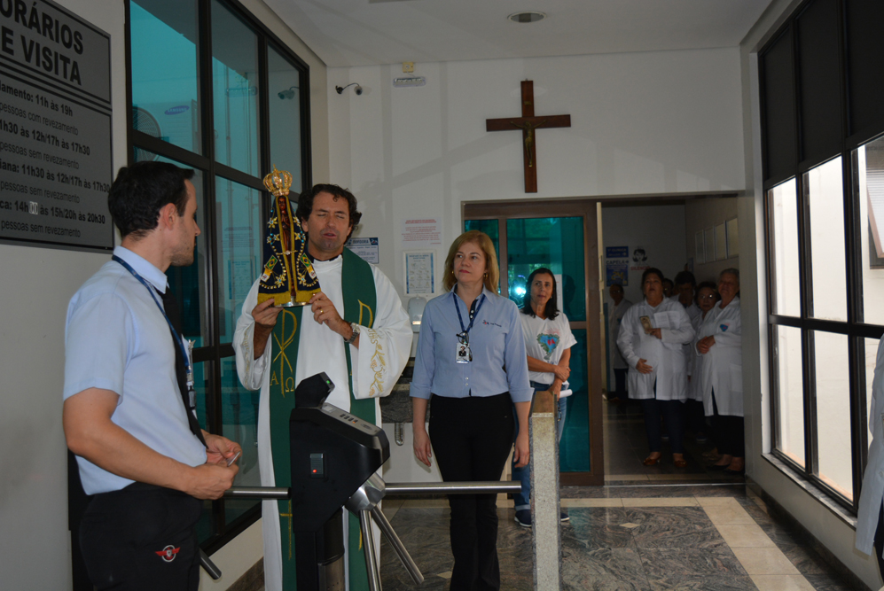 A missa celebrada na capela da instituição reuniu funcionários, membros da Pastoral da Saúde e acompanhantes. A visita faz parte da programação do 14º ‘Caminhando com Maria’. Segundo o padre Milton, a imagem de Nossa Senhora Aparecida restitui a fé e a esperança no coração de quem precisa. “Muitas vezes a dor mina a nossa fé, a nossa confiança e esperança. A visita da Santa Mãe suscita em nós a superação, a luta para continuar a viver”, afirmou. Após a celebração, a imagem de Nossa Senhora Aparecida passou pelas enfermarias, pediatria, UTIs e Pronto Socorro levando uma mensagem de acolhimento e fé. “Fiquei emocionada com a visita, me ajudou muito receber essa benção nesse momento”, afirmou a paciente Maria Valquiria Ortega Prado. O ator José Carlos Machado também se comoveu com os cânticos e a visita. "Traz uma energia positiva, de fé e alegria, o que ajuda na cura”, afirmou o ator.