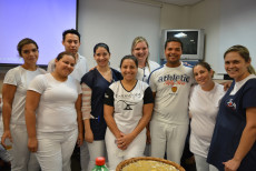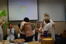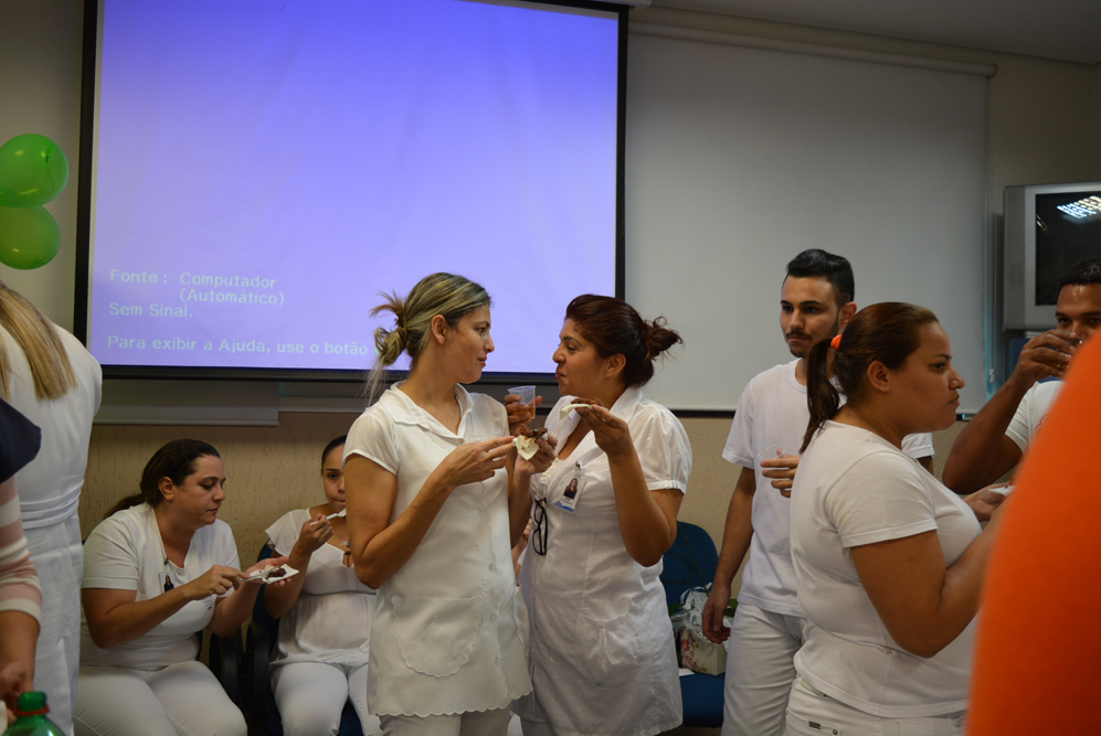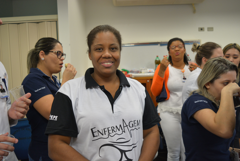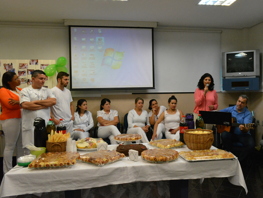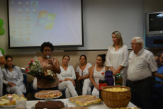 De acordo com a gerente de enfermagem, Daiane Hilário os temas dos encontros foram sugeridos pela própria equipe e o objetivo foi proporcionar uma semana diferente. “Já é uma tradição não buscar assuntos técnicos nessa comemoração, queremos levar autoconhecimento e descontração para nossos profissionais”, afirmou. No encerramento do evento foi apresentado um vídeo em homenagem as equipes de enfermagem e os músicos da Escola Municipal de Artes Jupyra realizaram uma apresentação em voz e violão. A auxiliar de enfermagem mais antiga em atividade, Antônia Neide Pereira da Silva foi homenageada pelos 40 anos de serviços prestados na instituição. “O mais importante nesta profissão é o ato de cuidar do outro, sempre se colocando no lugar do paciente”, frisou a auxiliar de enfermagem.