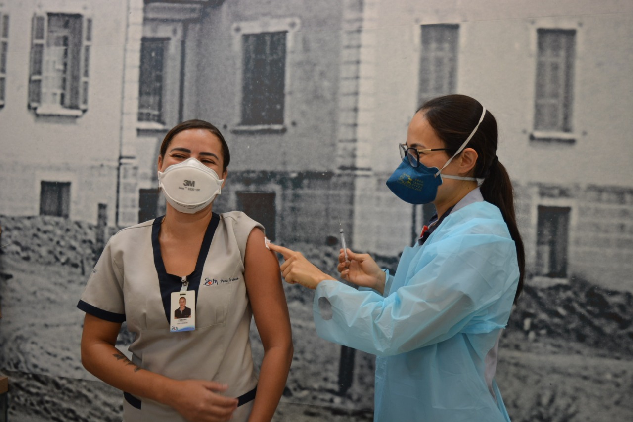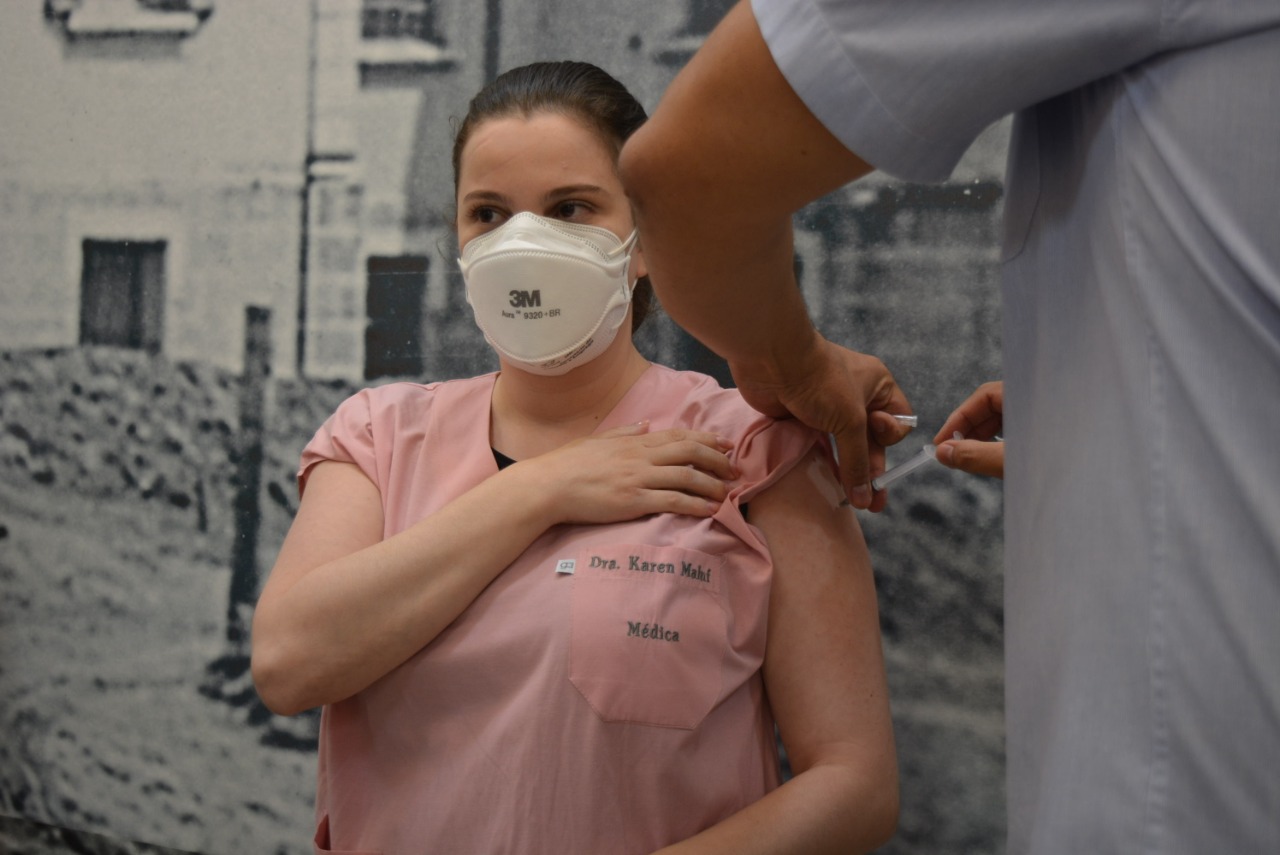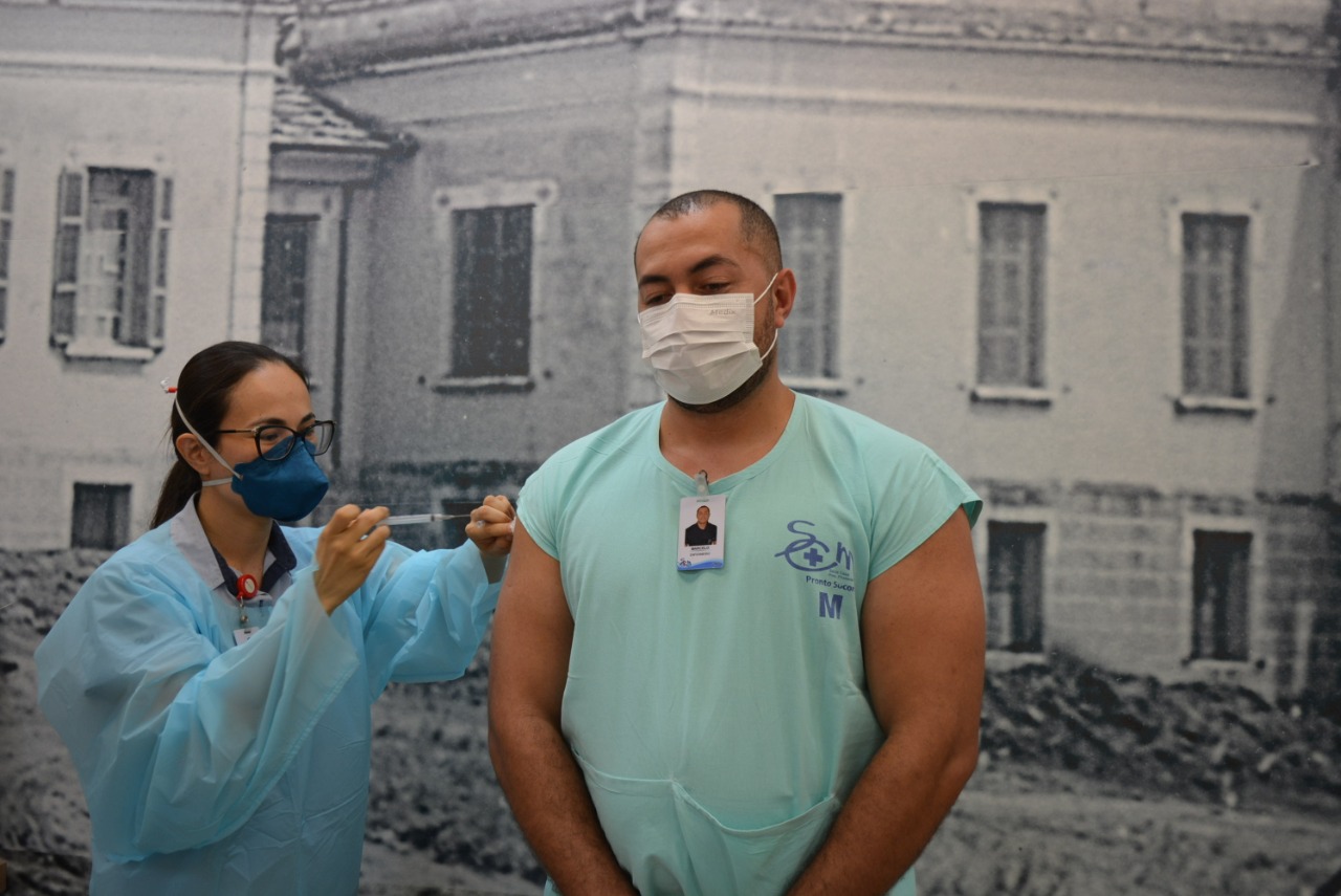 A primeira a receber a vacina foi a funcionária Fabiana Barbosa Moraes do setor de Higiene e Limpeza. “ Recebi a primeira dose de esperança. Estou feliz por isso. Desejo muito que todos possam receber”, afirmou emocionada. A auxiliar de enfermagem, Solange Alves Rodrigues foi a segunda a ser imunizada. “É uma segurança a mais para nós e também para nossa família. Estou mais tranquila agora”, destacou Solange. O enfermeiro Marcelo Fernandes de Oliveira que trabalha há 14 anos na Santa Casa também comemorou a dose de proteção. “Essa vacina é uma vitória diante de tudo que estamos passando. Chegar até aqui sem ter me contaminado já era motivo de comemoração, e agora, protegido é ainda mais”, explicou. Nesta primeira etapa, 400 funcionários serão vacinados na instituição. Todos receberão doses da CoronaVac, vacina produzida através da parceria entre o Instituto Butantan e o laboratório chinês Sinovac.