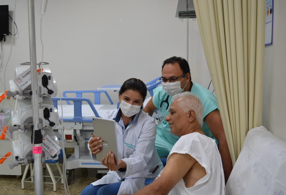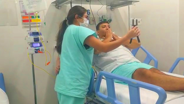 Por causa dos riscos do novo coronavírus, as visitas nas UTIs estão suspensas. Para o encontro virtual, a equipe do hospital entra em contato com familiares e combina o horário para a ligação. A frequência das chamadas é definida pelos médicos, que levam em conta o estado de saúde do paciente. O resultado desse trabalho humanizado é muito positivo, minimiza a saudade, funciona com um estímulo para o paciente e proporciona mais segurança e confiança para a família que está longe. A aposentada Maria Alice Cruz Cristo de Melo ficou cinco dias internada na UTI com problema renal e foi pela tecnologia que manteve a conexão com a família. “No começo foi difícil porque ela passou um período muito crítico, ficávamos ansiosos esperando o outro dia. Os irmãos dela que moram longe, os amigos todos fizeram questão de enviar vídeos, esse contato foi muito importante para a recuperação dela”, afirmou a filha da paciente, Quézia Cruz Cristo de Azevedo. “Quando recebia o vídeo sentia uma alegria, uma emoção muito grande, foi um bálsamo para minha alma. Não precisa tá perto, pode tá longe”, falou a paciente Maria Alice.